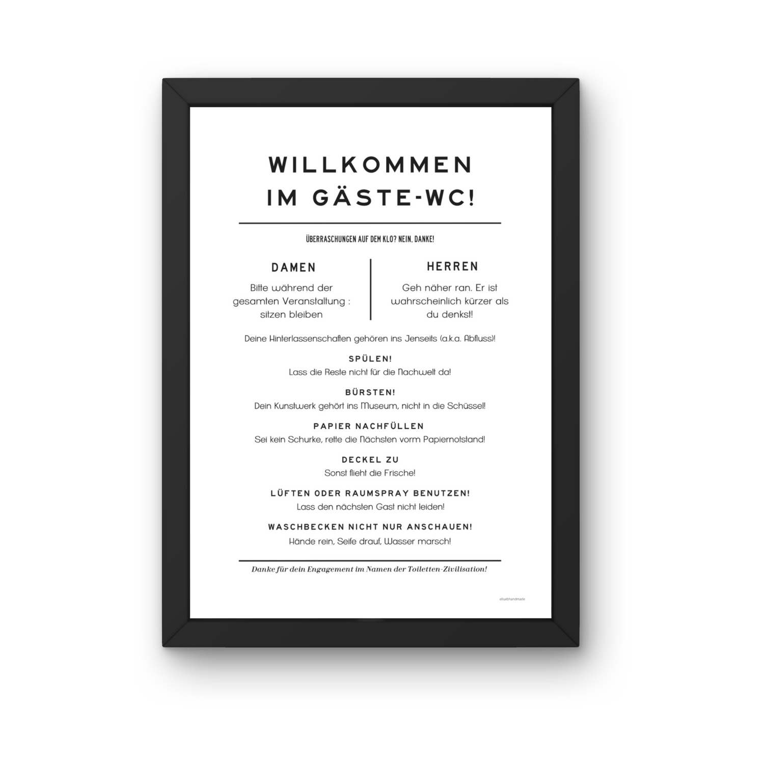 Toiletten Regeln Poster, Wanddeko zum Ausdrucken (Format A4), WC-Deko zum sofort Download